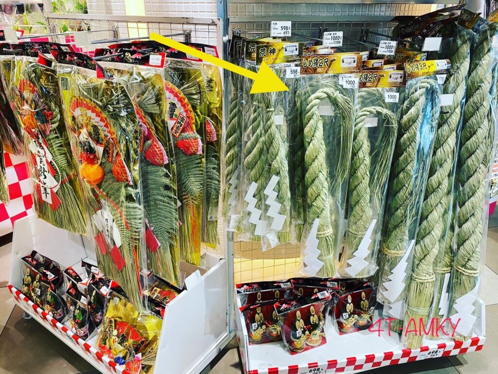 12月のあるスーパーのお正月飾りとしめ縄の売り場