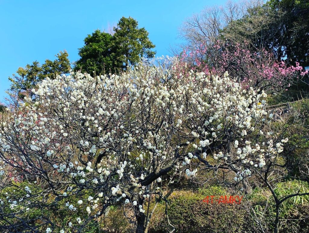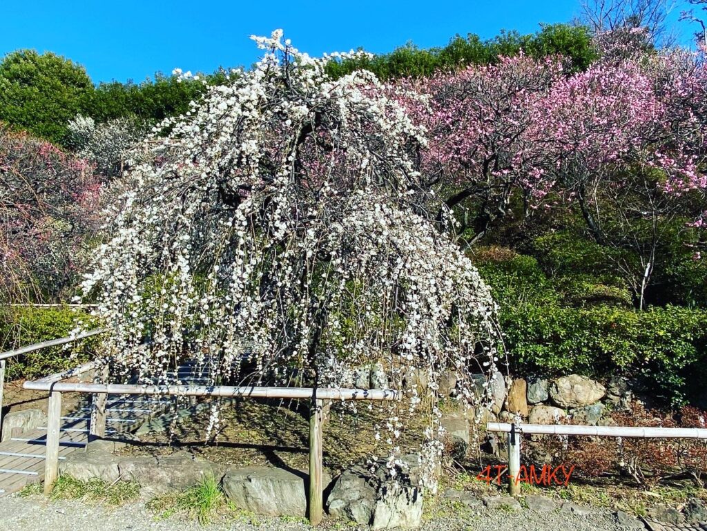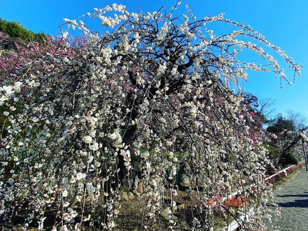 30種類の梅の木があり、それぞれ開花時期が違うので、毎年1月上旬から3月上旬の2か月にわたりそれぞれの梅の花が楽しめます。