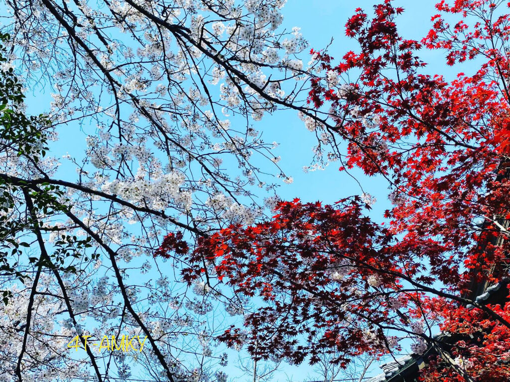 Amazingly, I found a place where I can see both Sakura and Momiji (Japanese maple) at the same time. It was like a magical moment in which spring and autumn coexisted simultaneously.