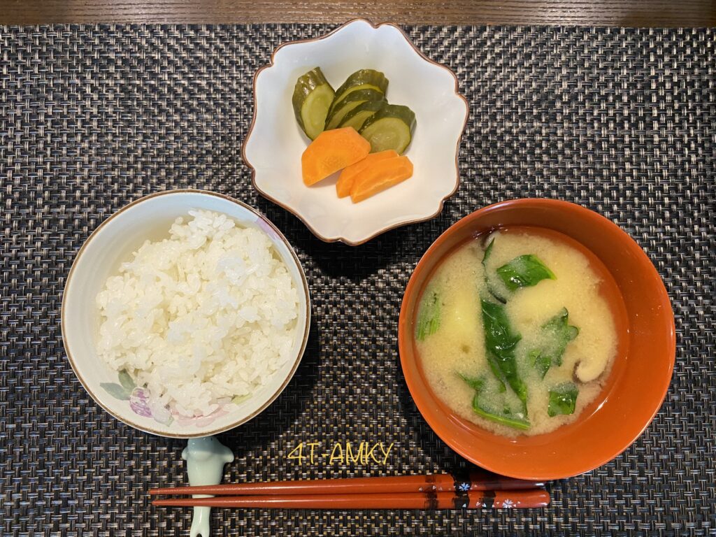 For breakfast, I am happy with just plain white rice, miso soup, and nuka-zuke.