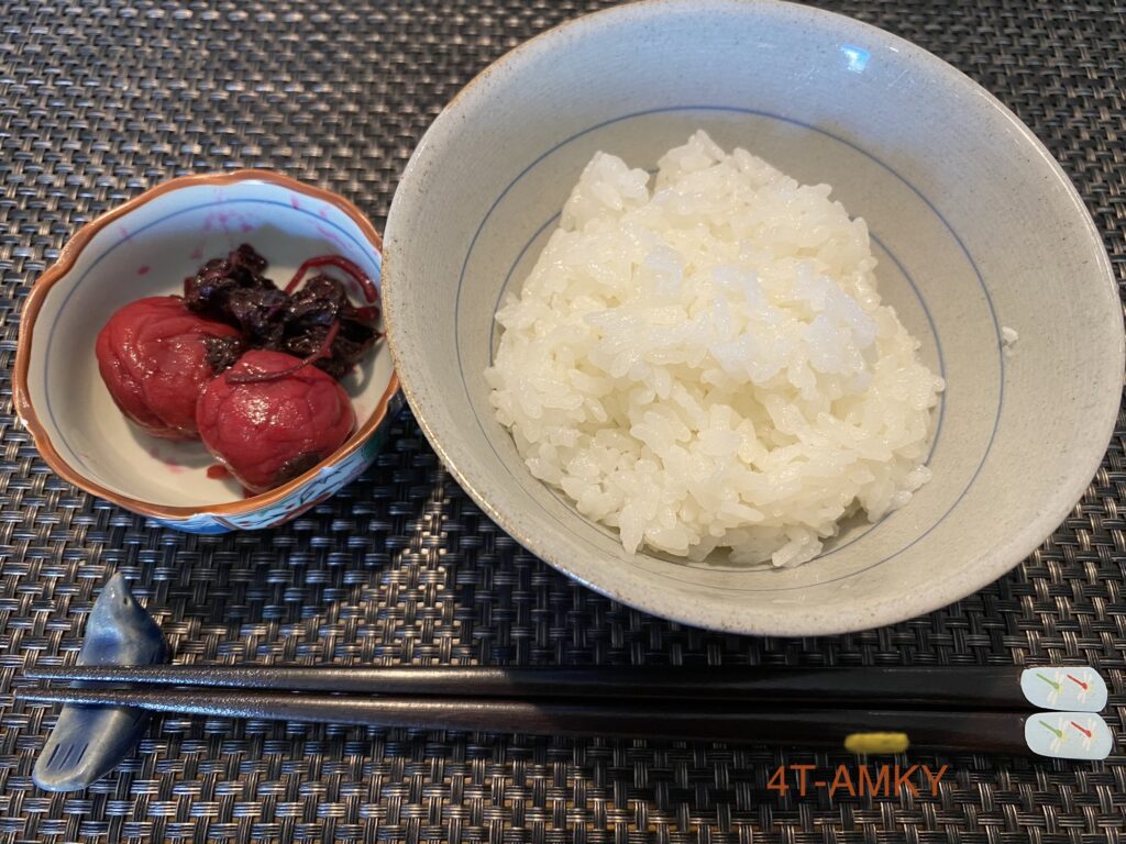For example, rice with umeboshi (salt pickled plums).